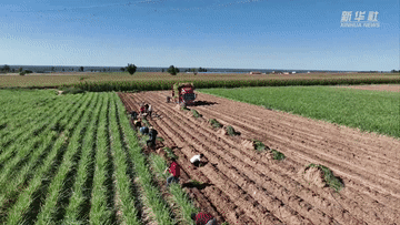 位于毛乌素沙漠南缘的陕西省靖边县,2万亩红葱喜迎丰收。近年来,靖边红葱产业发展迅速,全县实现规模化、标准化、机械化种植。