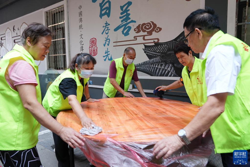在南昌市东湖区火神庙社区,“时间银行”志愿者在社区义务劳动(9月29日摄)。