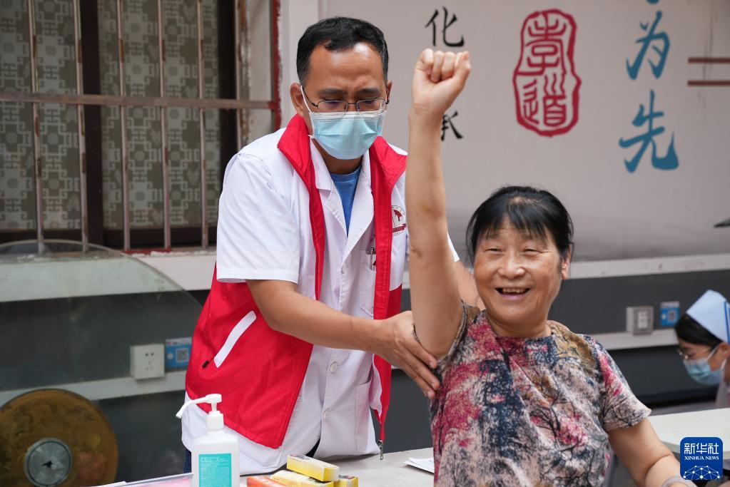 在南昌市东湖区火神庙社区,“时间银行”志愿团队组织社区的老年人开展义诊(9月29日摄)。