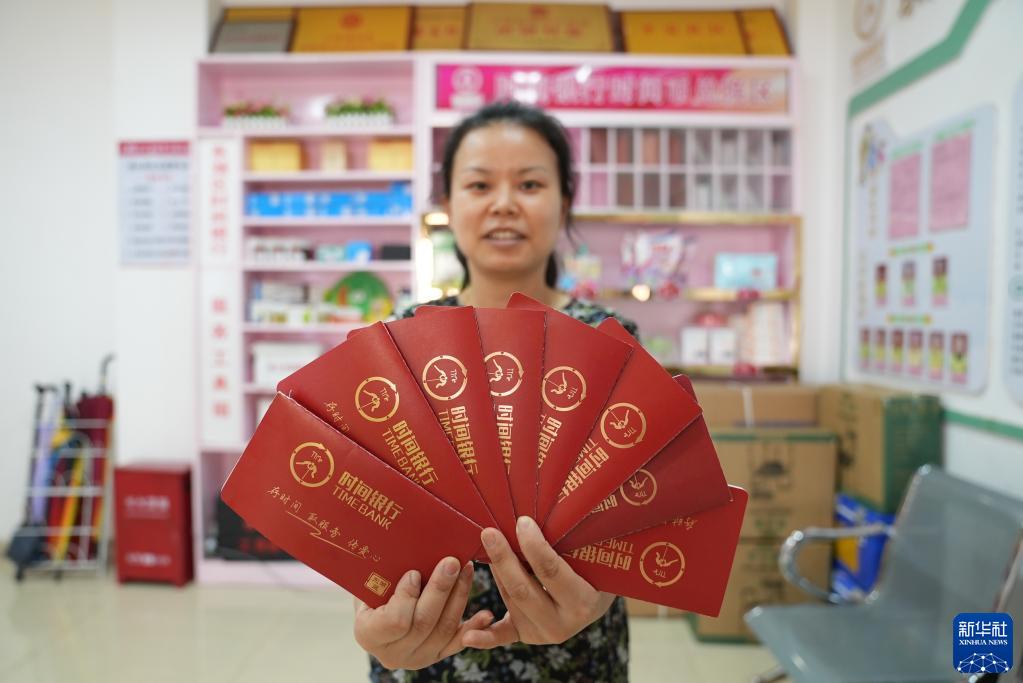 在南昌市东湖区火神庙社区,“时间银行”的工作人员展示志愿者的“存折”(9月29日摄)。这里储蓄的都是他们的服务时间,志愿者可将一部分服务时间用于兑换各类商品,也可用于兑换养老服务项目。