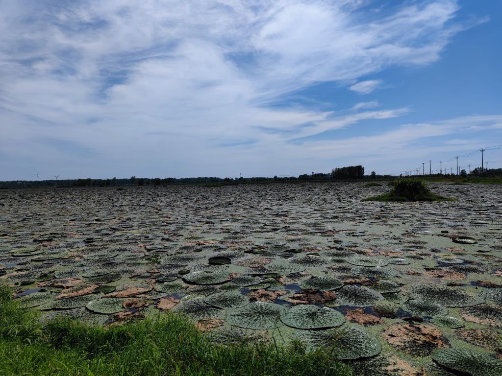 位于阜阳市阜南县蒙洼蓄洪区的芡实塘。新华社记者 何曦悦 摄(2022年8月11日摄)