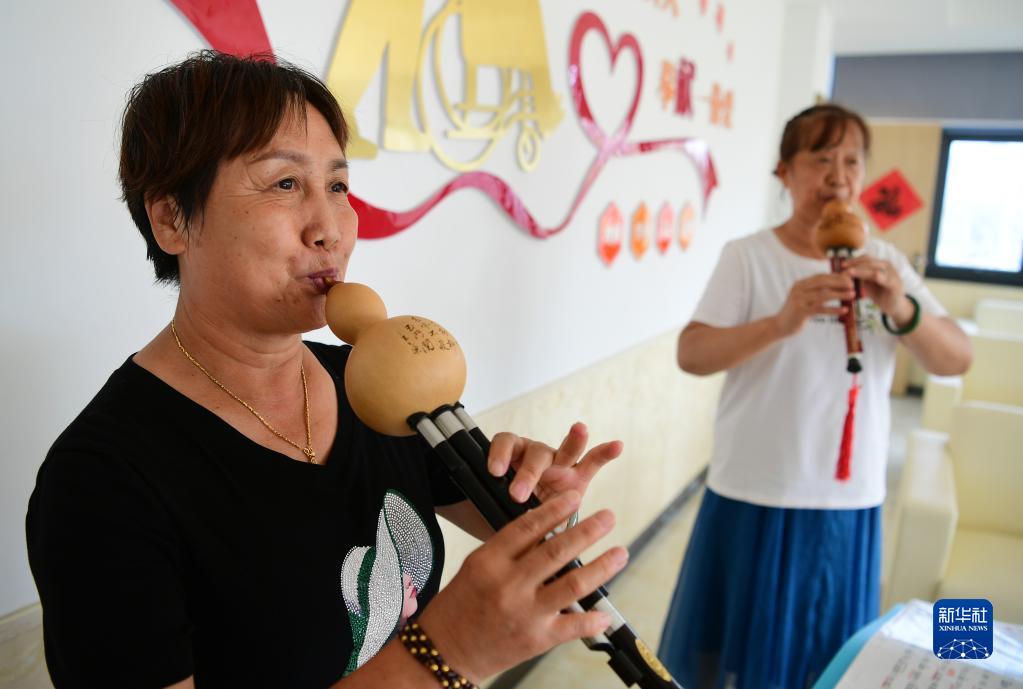 9月30日,老人在肥西县上派镇“爱和家”居家养老服务中心练习乐器。