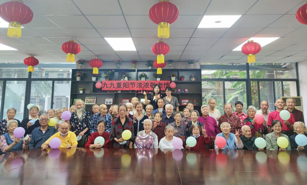湖北省武汉市武昌区社会福利院里的老人在重阳节合影留念。(受访者供图)