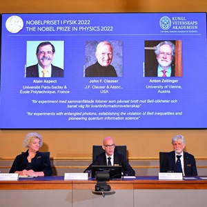 瑞典皇家科学院4日宣布,将2022年诺贝尔物理学奖授予法国科学家阿兰·阿斯佩、美国科学家约翰·克劳泽和奥地利科学家安东·蔡林格,以表彰他们在“纠缠光子实验、验证违反贝尔不等式和开创量子信息科学”方面所做出的贡献。