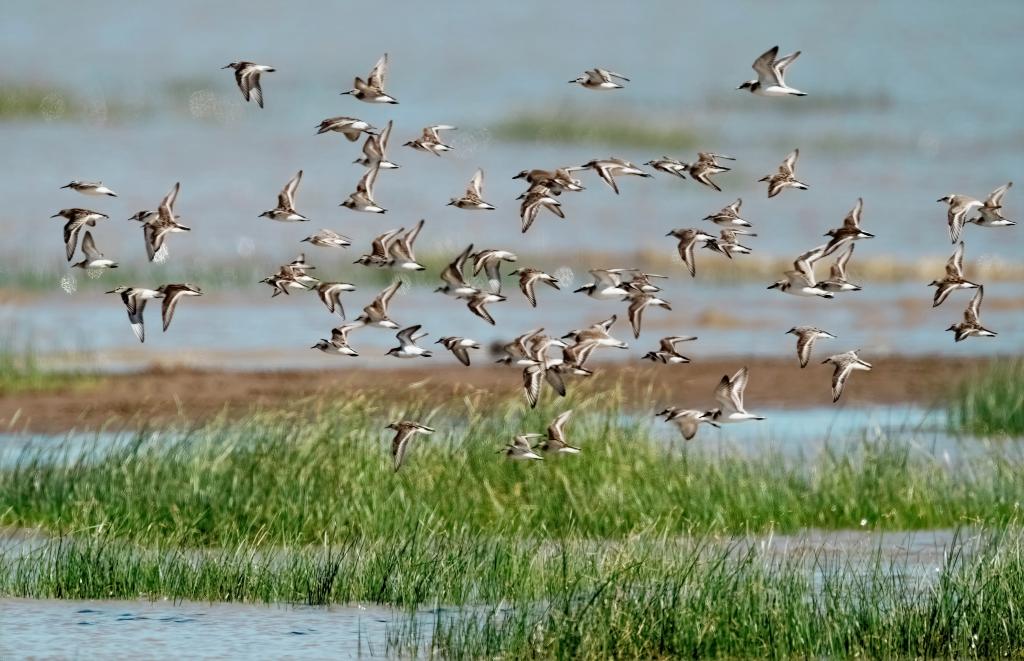 8月25日,一群水鸟飞过闽江河口国家湿地公园。新华社记者魏培全摄