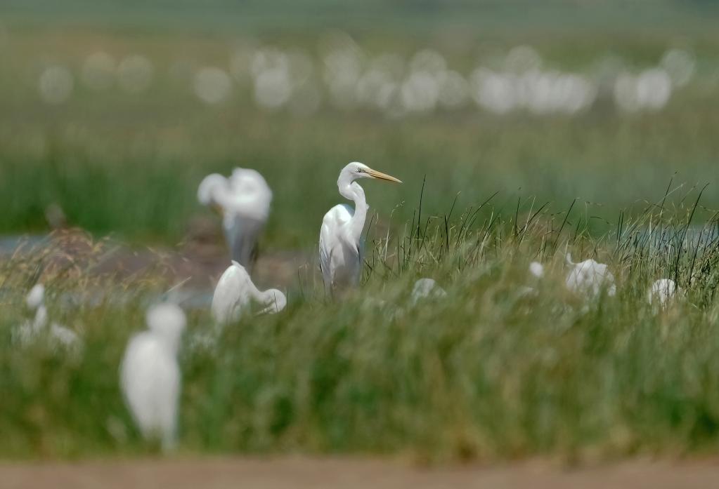 8月25日,一群白鹭在闽江河口国家湿地公园里觅食。新华社记者魏培全摄