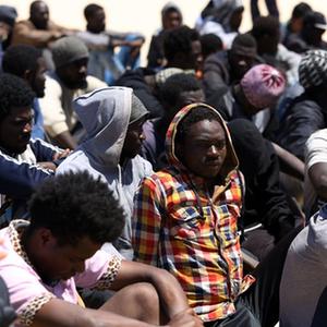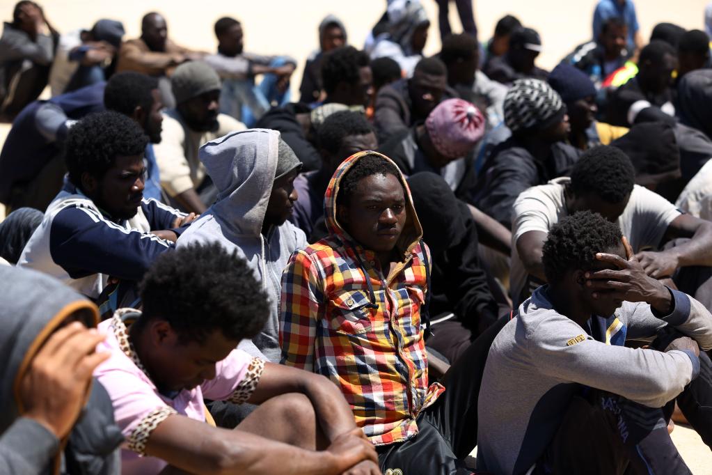 2018年5月13日,获救的偷渡者被转移到利比亚的黎波里一海军基地。新华社发(哈姆扎·图尔基亚摄)