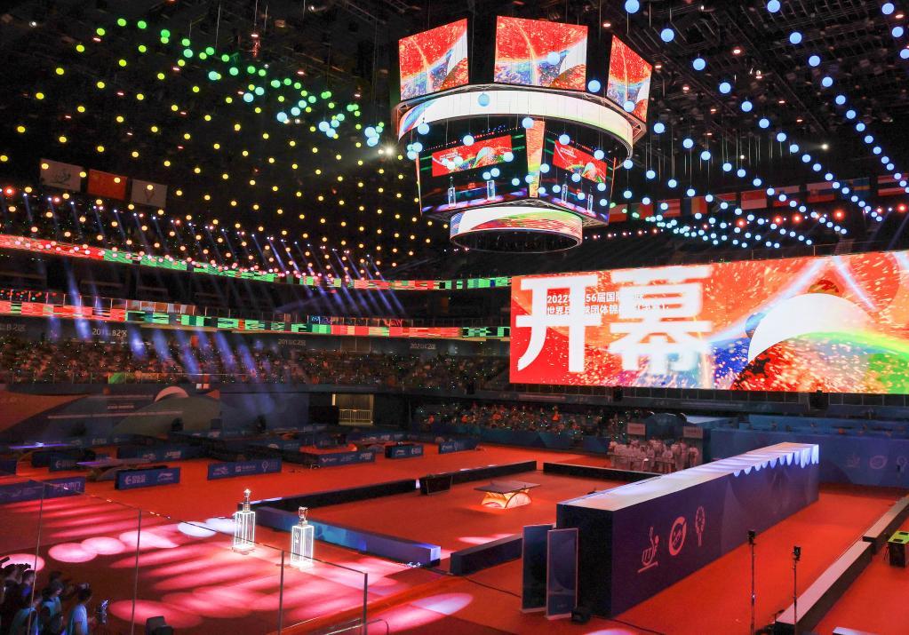 这是9月29日拍摄的成都世乒赛开幕式现场。新华社记者刘续摄