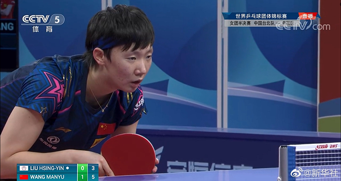 本次世乒赛中国台北队表现不俗,在四分之一决赛中战胜强敌新加坡队。中国队当天半决赛派出孙颖莎、陈梦、王曼昱的最强阵容出战。