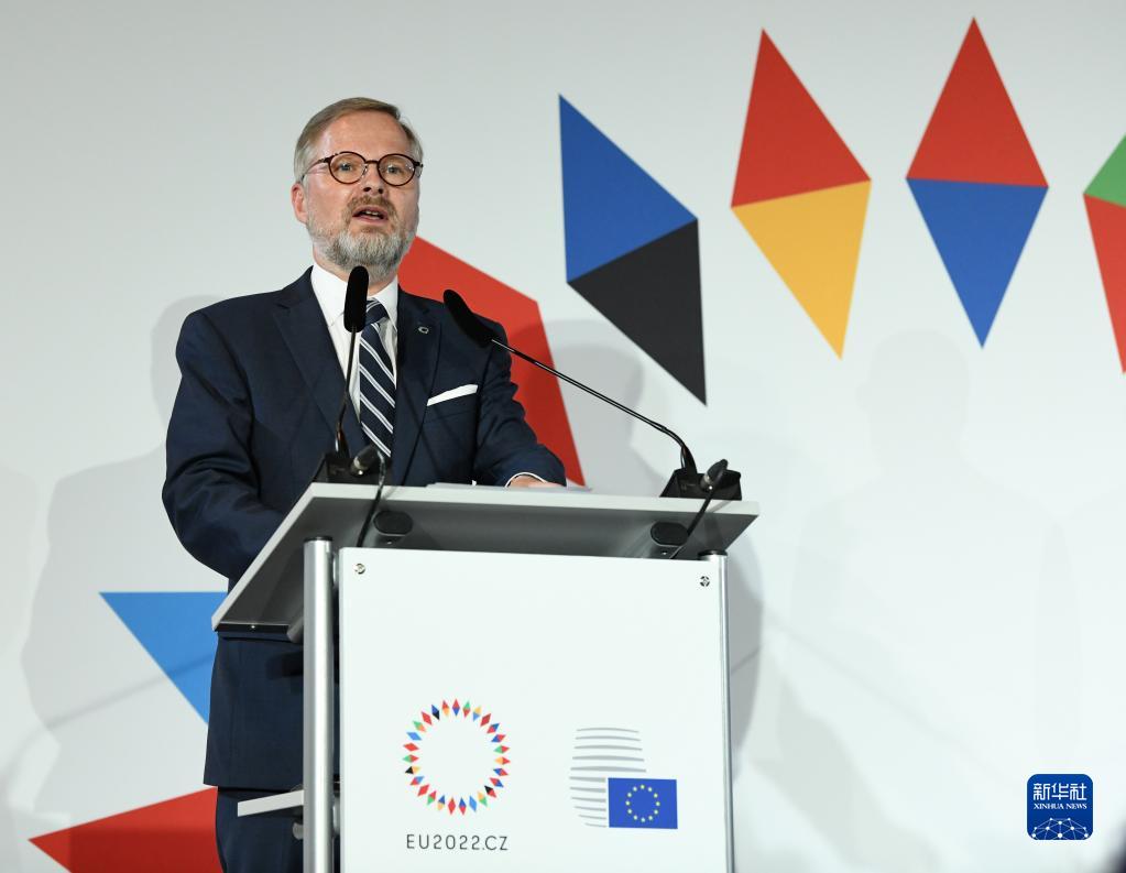 10月7日,在捷克首都布拉格,欧盟轮值主席国捷克总理菲亚拉出席欧盟领导人非正式会议的会后联合新闻发布会。新华社记者 连漪 摄