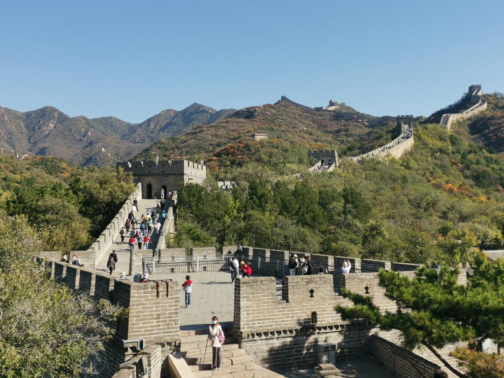 10月7日,游客攀登游览北京八达岭长城赏秋景。新华社记者马宁摄