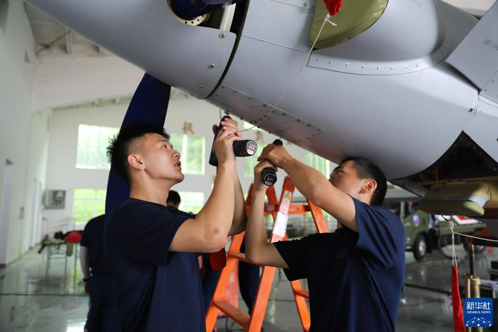空军航空兵某团机务人员对无人机进行维护(2022年7月29日摄)。新华社发(孙晟轩 摄)