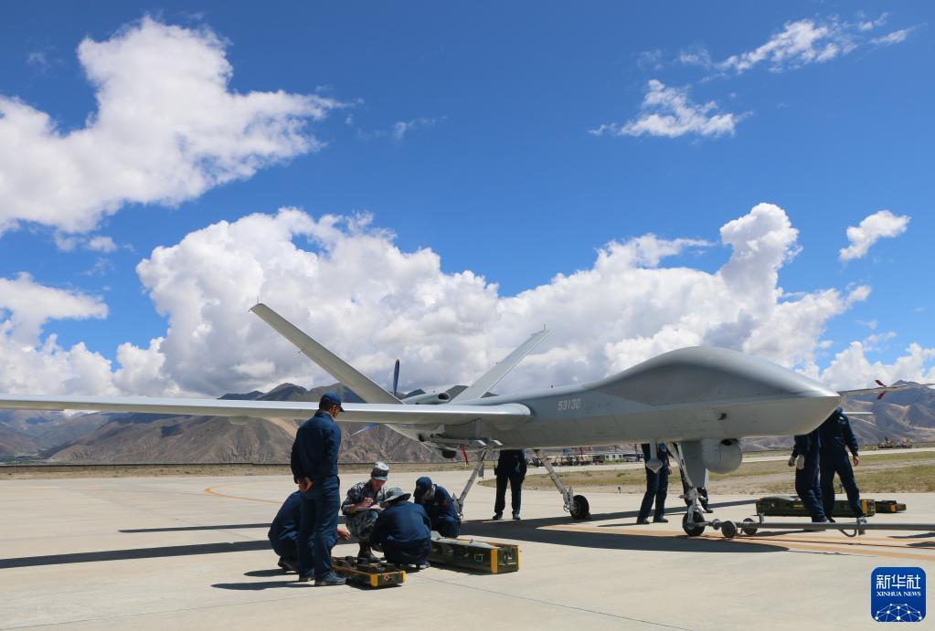 空军航空兵某团机务人员进行无人机起飞前准备(2022年8月7日摄)。新华社发(刘载誉 摄)