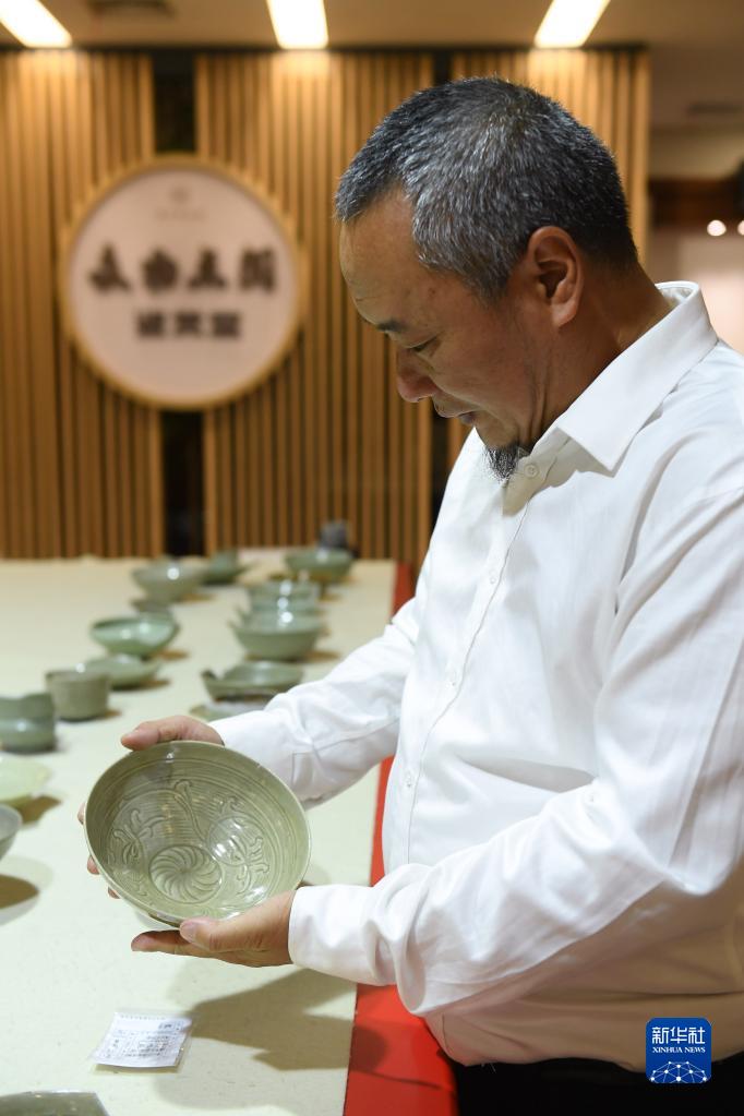 10月11日,温州市文物考古研究所工作人员在温州市博物馆库房点阅温州朔门古港遗址出土龙泉青瓷器。