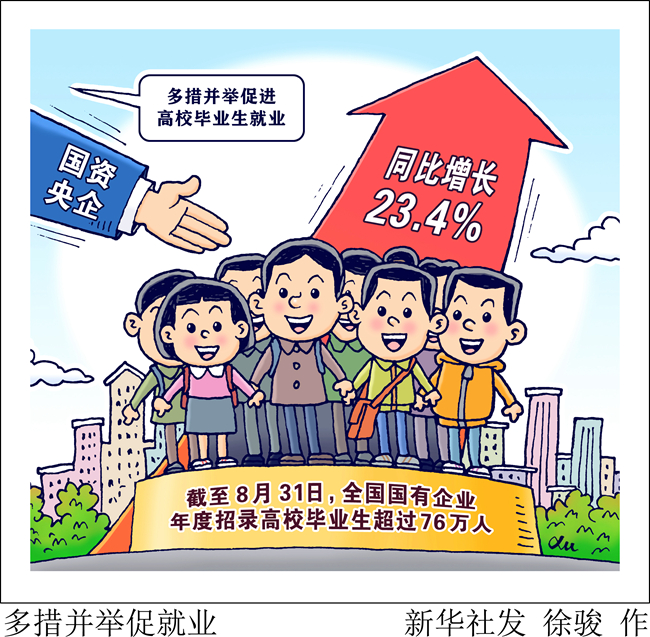 截至8月底全国国企年度招录高校毕业生同比增长23.4%