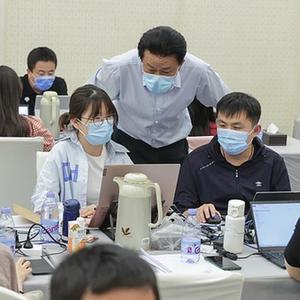 李群(站立者)在北京指导流调溯源数据分析工作(2022年9月18日摄)。新华社记者 张玉薇 摄