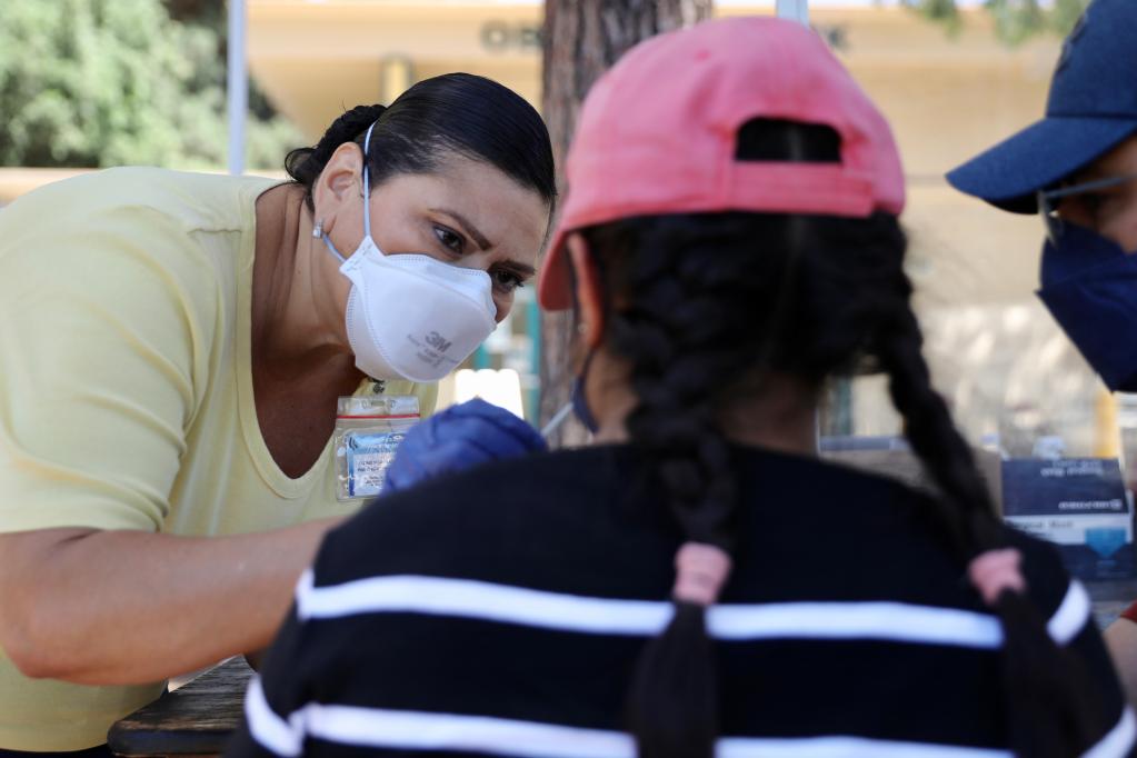 2022年8月5日,在美国加利福尼亚州洛杉矶县,居民接受卫生防疫人员的检测取样。新华社发