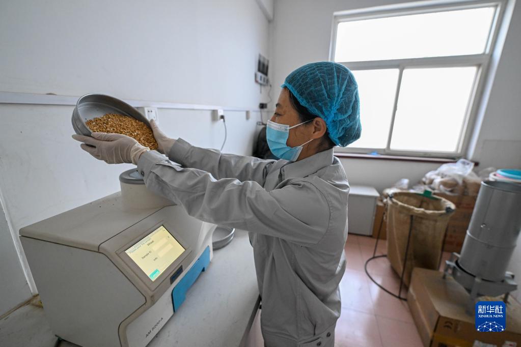 10月12日,在中央储备粮天津东丽直属库有限公司大港分公司,质检员操作仪器检测粮食水分含量。