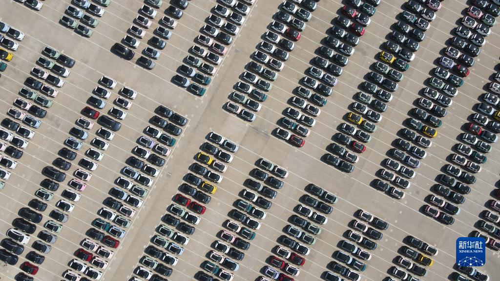10月12日在位于芜湖市的奇瑞汽车股份有限公司新能源一期工厂拍摄的等待交付的新能源汽车(无人机照片)。