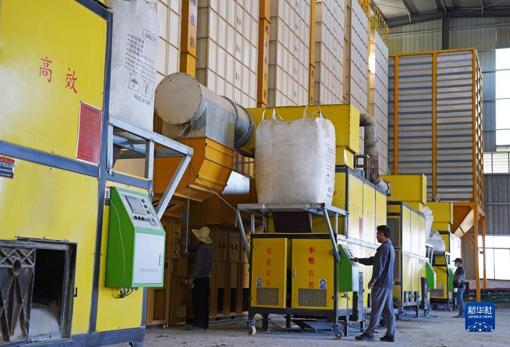 在江西省南昌县大田农社烘干车间,农民使用烘干设备将稻谷烘干(10月11日摄)。