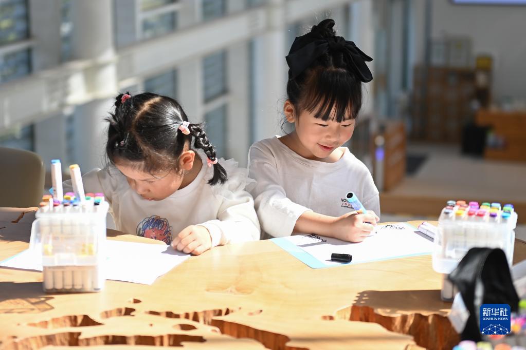 10月14日,湖州市吴兴高新区中心幼儿园的小朋友在灵粮农场以水稻为主题进行绘画。