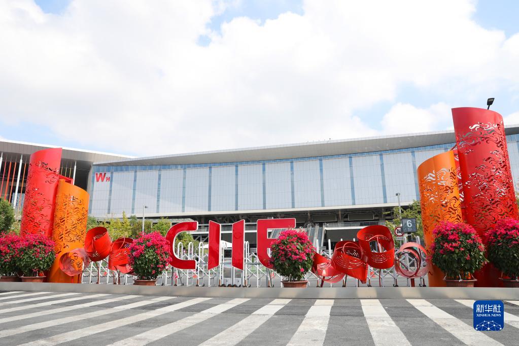 位于上海青浦区的国家会展中心(上海)场馆外部装饰工作正在进行中,迎接将于11月5日开幕的第五届中国国际进口博览会。