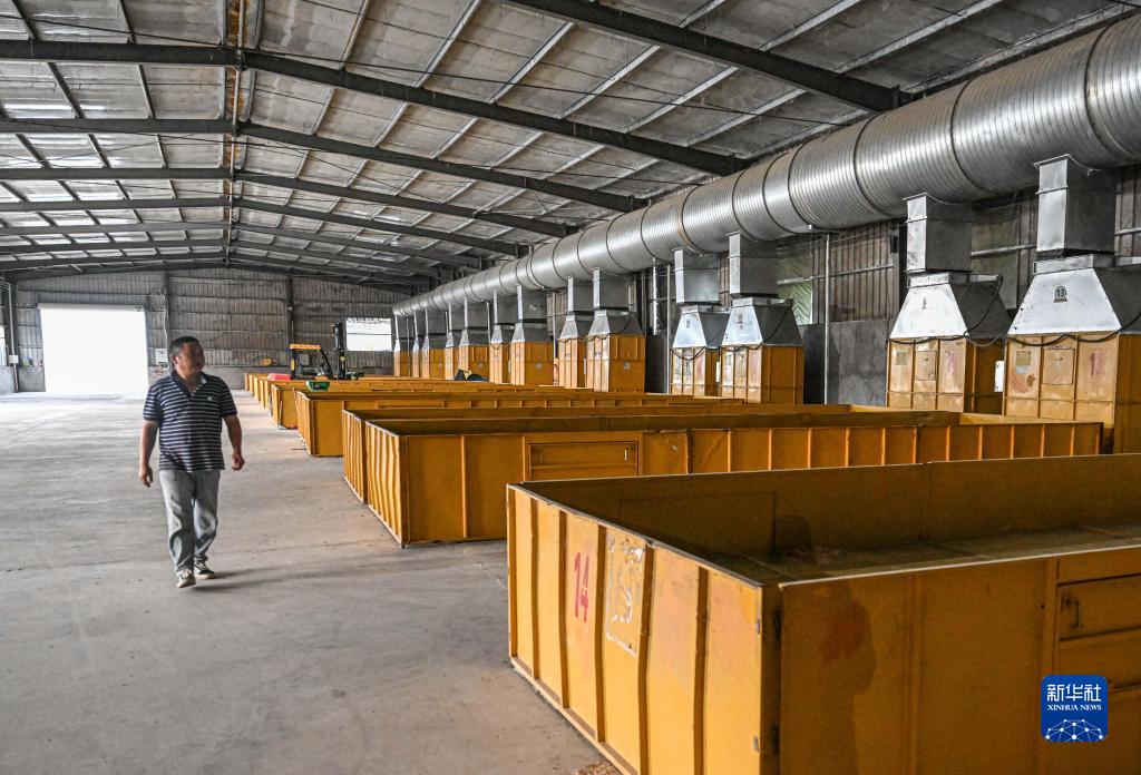 10月15日,工人在位于海南省东方市的海南农乐南繁科技有限公司烘干厂内巡视。新华社记者 蒲晓旭 摄