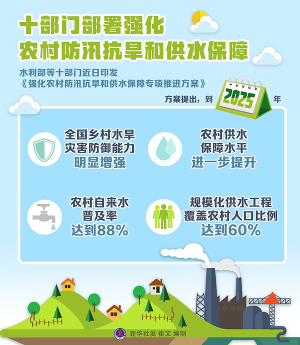新华社北京10月17日电 水利部等十部门近日印发《强化农村防汛抗旱和供水保障专项推进方案》,对乡村建设行动重点任务之一的强化农村防汛抗旱和供水保障工作进行部署推进。