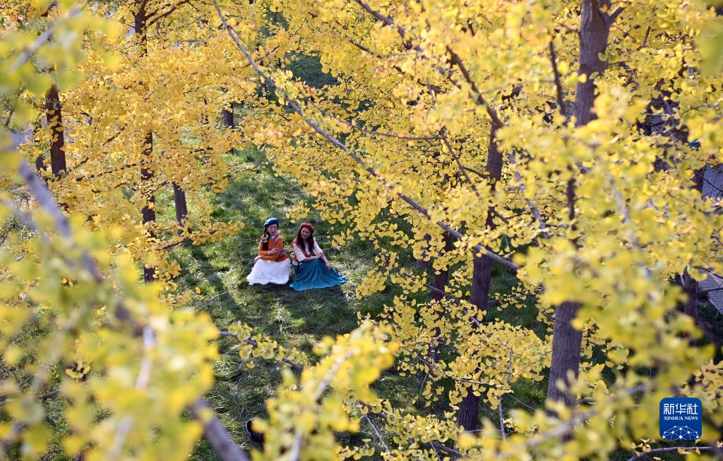 近日,古城西安市雁塔区雁南公园里秋色正浓,吸引游客赏景游玩。