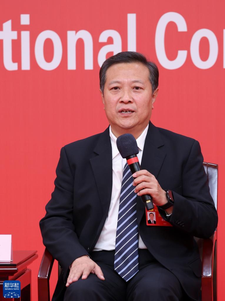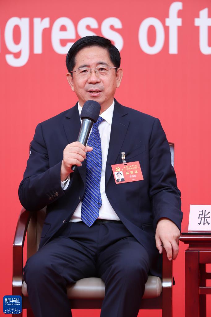 10月18日,中国共产党第二十次全国代表大会新闻中心举行集体采访,请北京、天津、河北、山西、内蒙古、辽宁、吉林代表团新闻发言人出席,介绍代表团学习讨论二十大报告情况,并回答记者提问。这是山西省委常委、常务副省长张吉福在回答记者提问。新华社记者 陈建力 摄