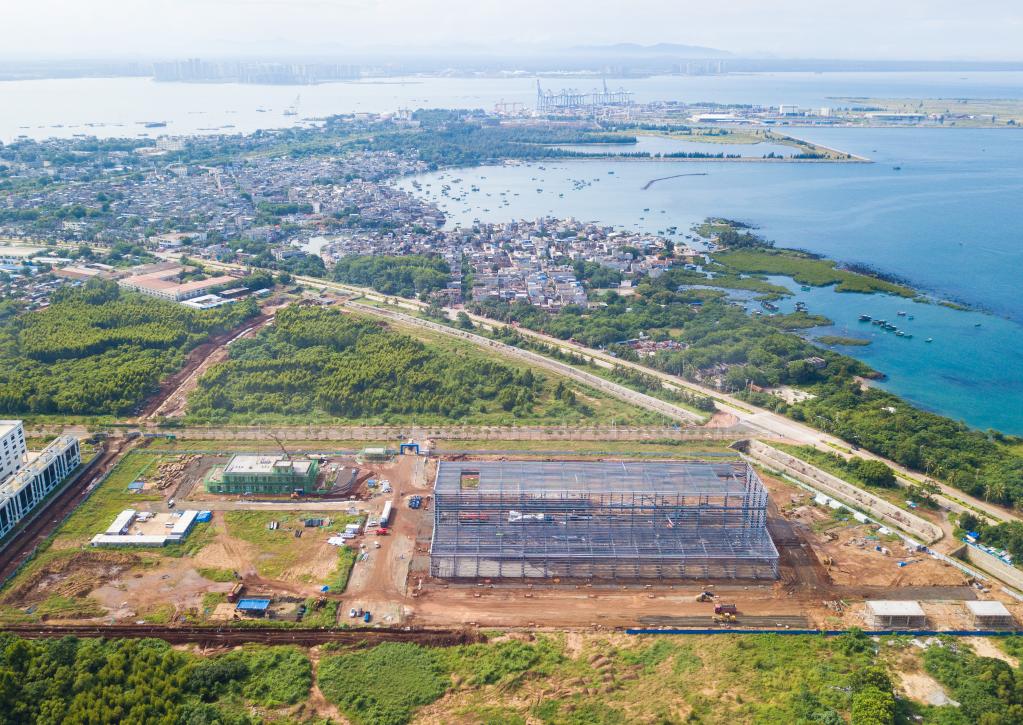图为10月2日在海南洋浦经济开发区拍摄的建设中的申能电气风电新能源装备产业项目(无人机照片)。新华社记者蒲晓旭 摄