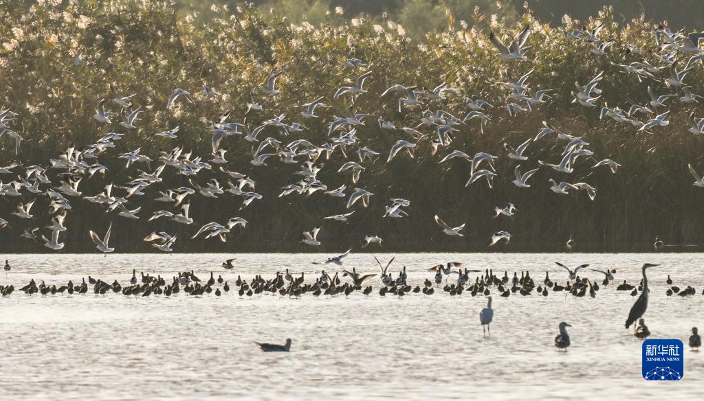 近期,大批越冬候鸟云集天津七里海湿地自然保护区,白琵鹭、苍鹭、灰鹤等候鸟在芦苇荡上舞出翩跹身影,绘就秋日湿地画卷。经过修复保护,目前这里已成为天津水鸟种类最全、数量最多的鸟类自然保护区,可监测到的鸟类品种已由10年前的182种增至258种。