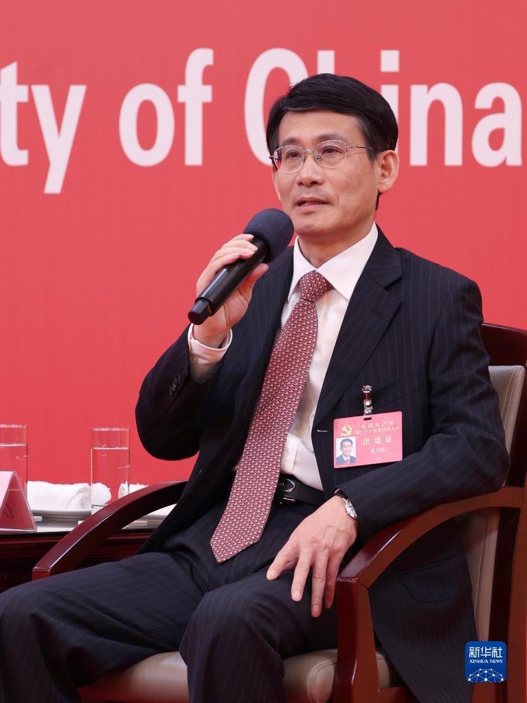 这是海南省委常委、常务副省长沈丹阳在回答记者提问。新华社记者 张玉薇 摄