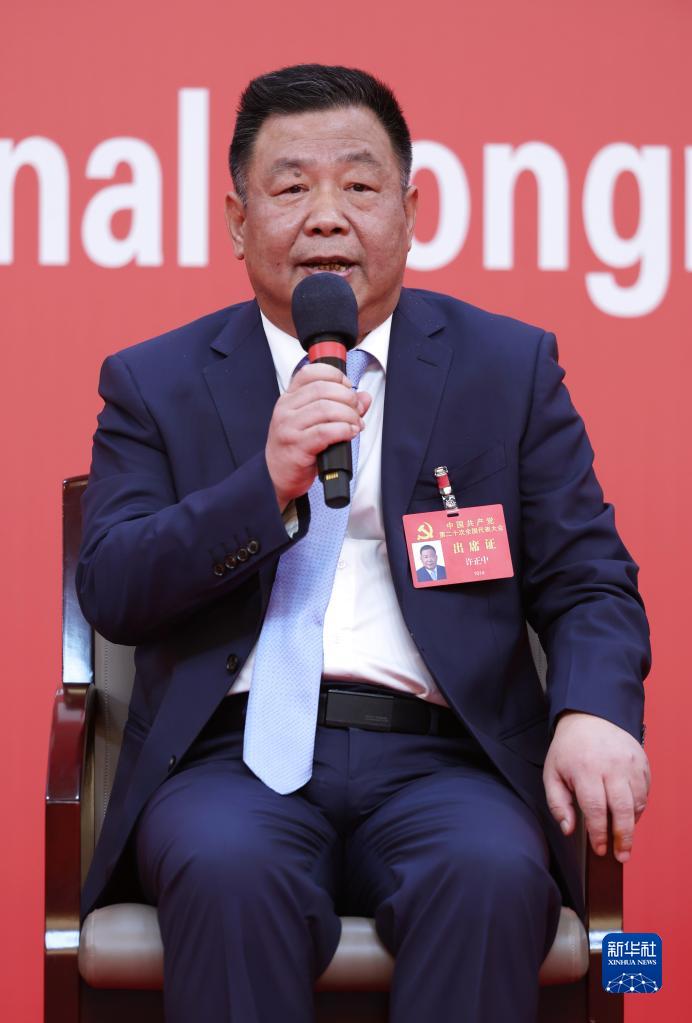 10月19日,中国共产党第二十次全国代表大会新闻中心举行集体采访。山东、河南、湖北、湖南、广东、广西、海南代表团新闻发言人出席,介绍代表团学习讨论二十大报告情况,并回答记者提问。新华社记者 张玉薇 摄