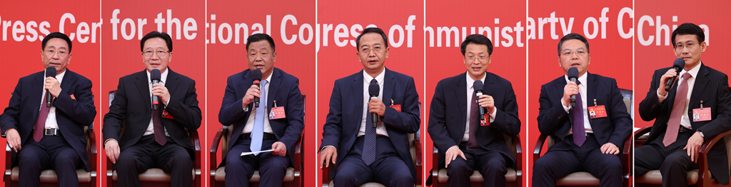 这7位新闻发言人是:山东省委常委、宣传部部长白玉刚,河南省委副书记、政法委书记周霁,湖北省委常委、宣传部部长许正中,湖南省委常委、宣传部部长杨浩东,广东省委常委、常务副省长张虎,广西壮族自治区党委常委、宣传部部长孙大光,海南省委常委、常务副省长沈丹阳。他们结合实际,讲述了党的十八大以来,各地在经济发展、民生改善、生态文明等方面取得的历史性成就、发生的历史性变革。他们表示,连日来,各代表团认真学习讨论党的二十大报告,谈体会、谈认识、谈感受,大家一致认为,报告鼓舞人心、催人奋进。代表们完全赞成、坚决拥护这个报告,并表示未来要在各自的岗位上努力拼搏、锐意进取,给党和人民交上一份更加满意的答卷。