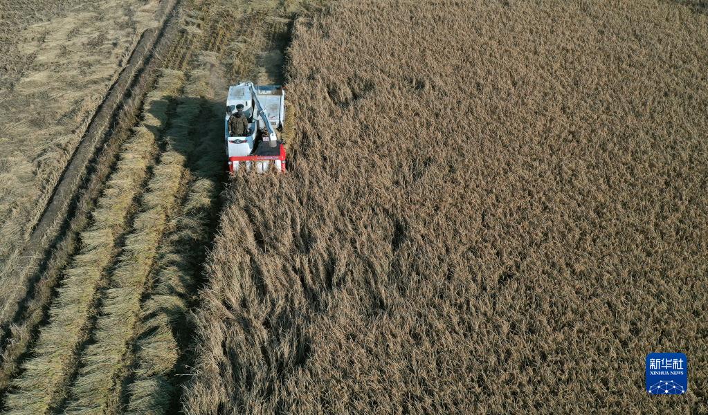 金秋时节,在辽宁省水稻主产区之一沈阳市苏家屯区,金灿灿的稻穗随风起伏,一台台收割机在田间往来穿梭,大片水稻陆续迎来收获,当地农民抢抓晴好天气收割水稻。