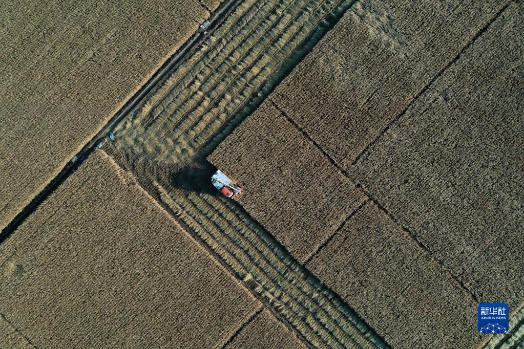 金秋时节,在辽宁省水稻主产区之一沈阳市苏家屯区,金灿灿的稻穗随风起伏,一台台收割机在田间往来穿梭,大片水稻陆续迎来收获,当地农民抢抓晴好天气收割水稻。