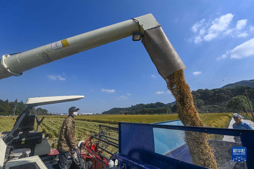 近期,浙江省杭州市富阳区富春江畔的数万亩稻田进入收获期,鱼米之乡呈现出一派热闹繁忙的丰收景象。近年来,富阳区深入开展“藏粮于技、藏粮于地”行动,强化技术服务指导,改造低丘缓坡推进“海绵农田”建设,持续提升粮食综合生产能力。2021年富阳区粮食播种面积和总产量达到23.01万亩和10.08万吨,获得“浙江省产粮大县”称号。
