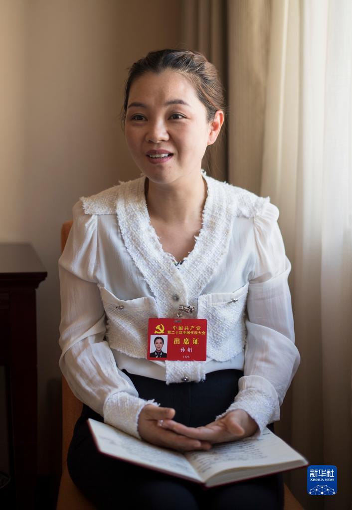 10月18日,孙娟代表接受记者采访。新华社记者 张豪夫 摄