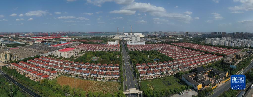 这是10月17日拍摄的江苏江阴长江村村貌(无人机照片)。新华社记者 季春鹏 摄