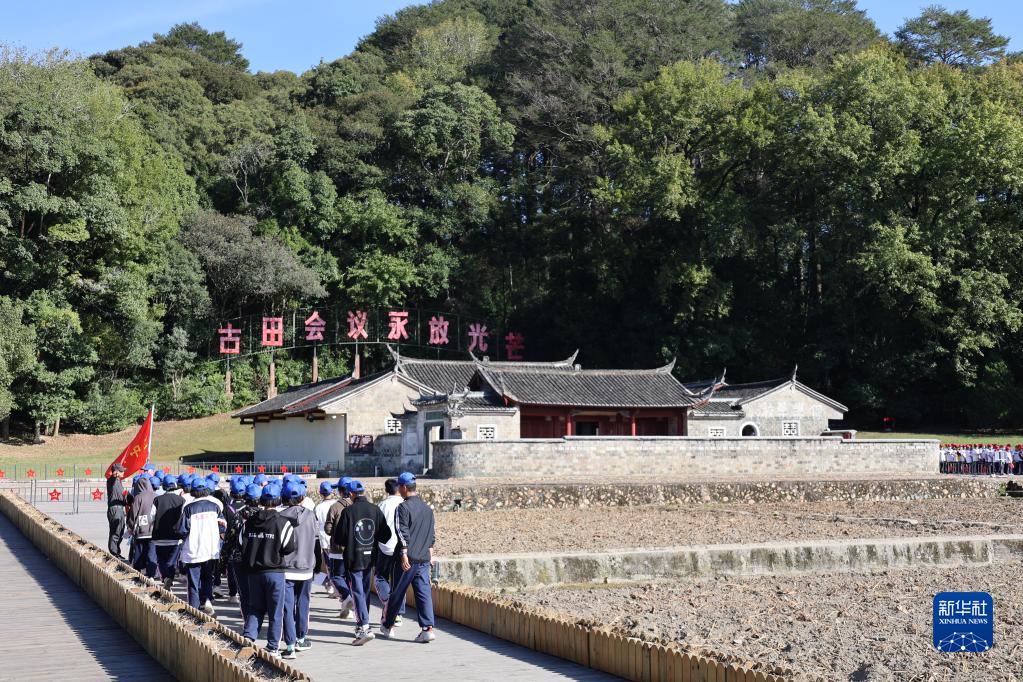 10月19日,在福建省上杭县古田镇,中学生研学团队在古田会议会址参观学习。新华社发(范道鑫 摄)