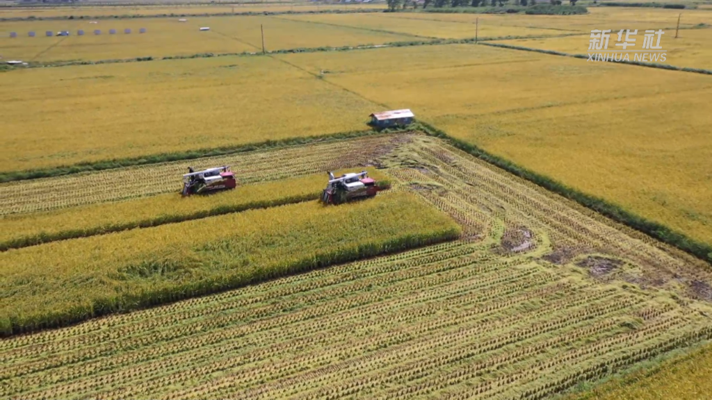 产粮大省吉林秋收工作正在进行中,最新农情调度数据显示,该省水稻收获已超七成。在吉林省水稻主产区舒兰市,有机水稻迎来丰收,多台联合收割机正在稻田中收割作业。