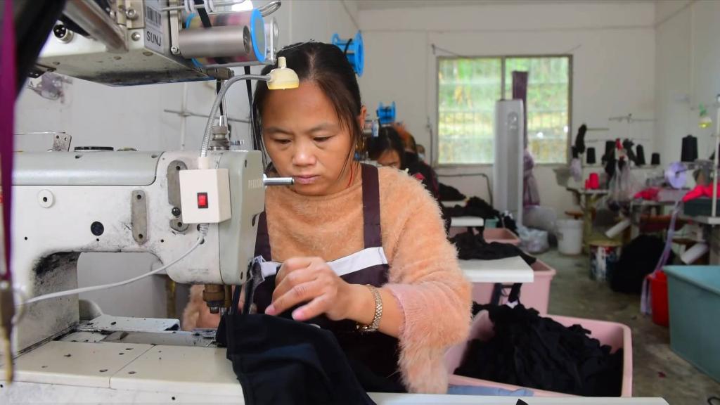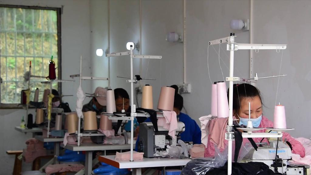 2021年,一直在外打工的田旭霞回到了家乡贵州省遵义市新蒲新区,看到当地许多妇女因在家照顾小孩而找不到合适的工作,她便创建了一家内衣加工厂,带动了当地的“妈妈”就业。工人们可以边工作边顾家,每个月还有比较稳定的收入。