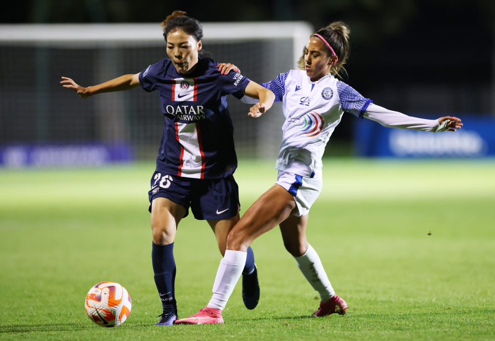 ↑9月9日,中国球员李梦雯(左)在法甲女子联赛的比赛中。新华社记者高静摄