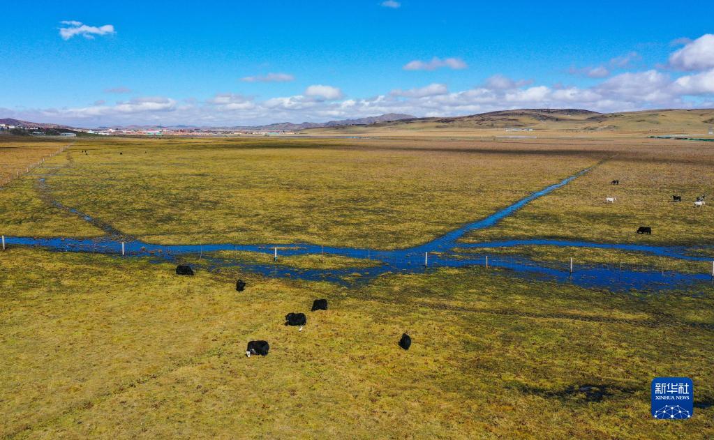 深秋时节,四川省阿坝藏族羌族自治州境内的大片湿地景色壮美。作为黄河上游重要水源涵养地,近年来,当地采取护湿还水,禁牧还草等生态修复治理措施,全力推动黄河上游生态保护,境内湿地生态环境得到持续改善。