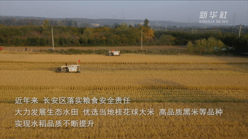 陕西省西安市长安区南依秦岭,山泉河流资源丰富,水稻种植历史悠久。近年来,长安区落实粮食安全责任,大力发展生态水田,优选当地桂花球大米、高品质黑米等品种,实现水稻品质不断提升。同时,当地将水稻种植与旅游观光产业相结合,助力乡村高质量发展。