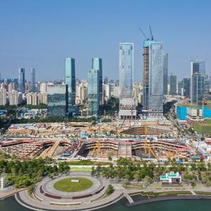 建设中的深圳湾文化广场(10月25日摄,无人机照片)。
