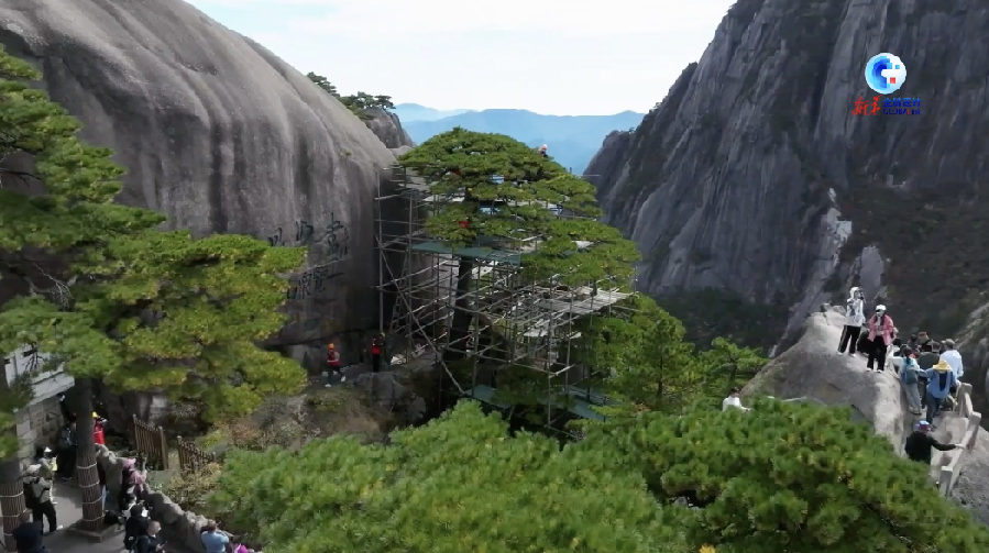 目前,迎客松第五次全面“体检”正在进行中,让我们随着记者的镜头一起走进“体检”现场。