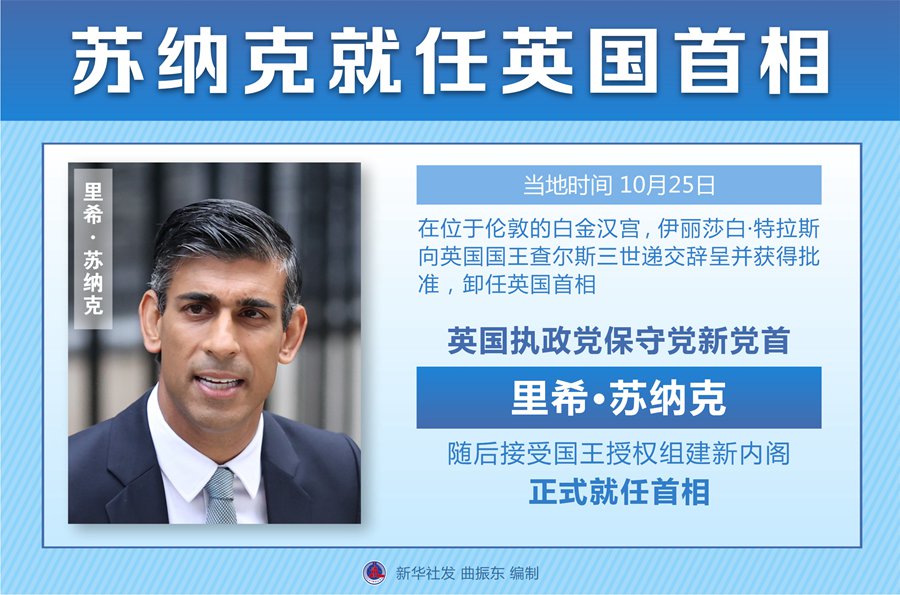 新华社伦敦10月25日电(记者杜鹃 许凤)英国执政党保守党新党首里希·苏纳克25日正式就任英国首相。