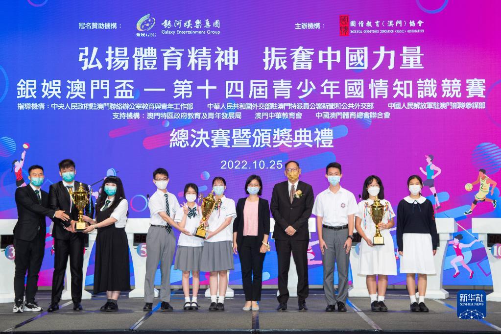 新华社澳门10月25日电(记者李寒芳 刘刚)由国情教育(澳门)协会主办的“第十四届青少年国情知识竞赛”总决赛暨颁奖典礼25日在澳门举行,教业中学、培正中学和澳门理工大学分别夺得了两个中学组和一个大学组的冠军。